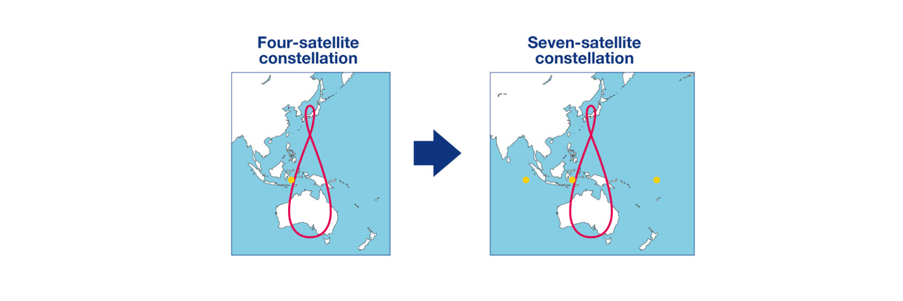 The QZSS constellation currently includes 4 operational satellites, with completion of the full 7 satellites expected through launch of 3 more satellites during 2024-2025, adding one satellite to the Quasi-Zenith Orbits, and two Geo-stationary satellites. The full 7 satellite system is expected to be operational by 2026.